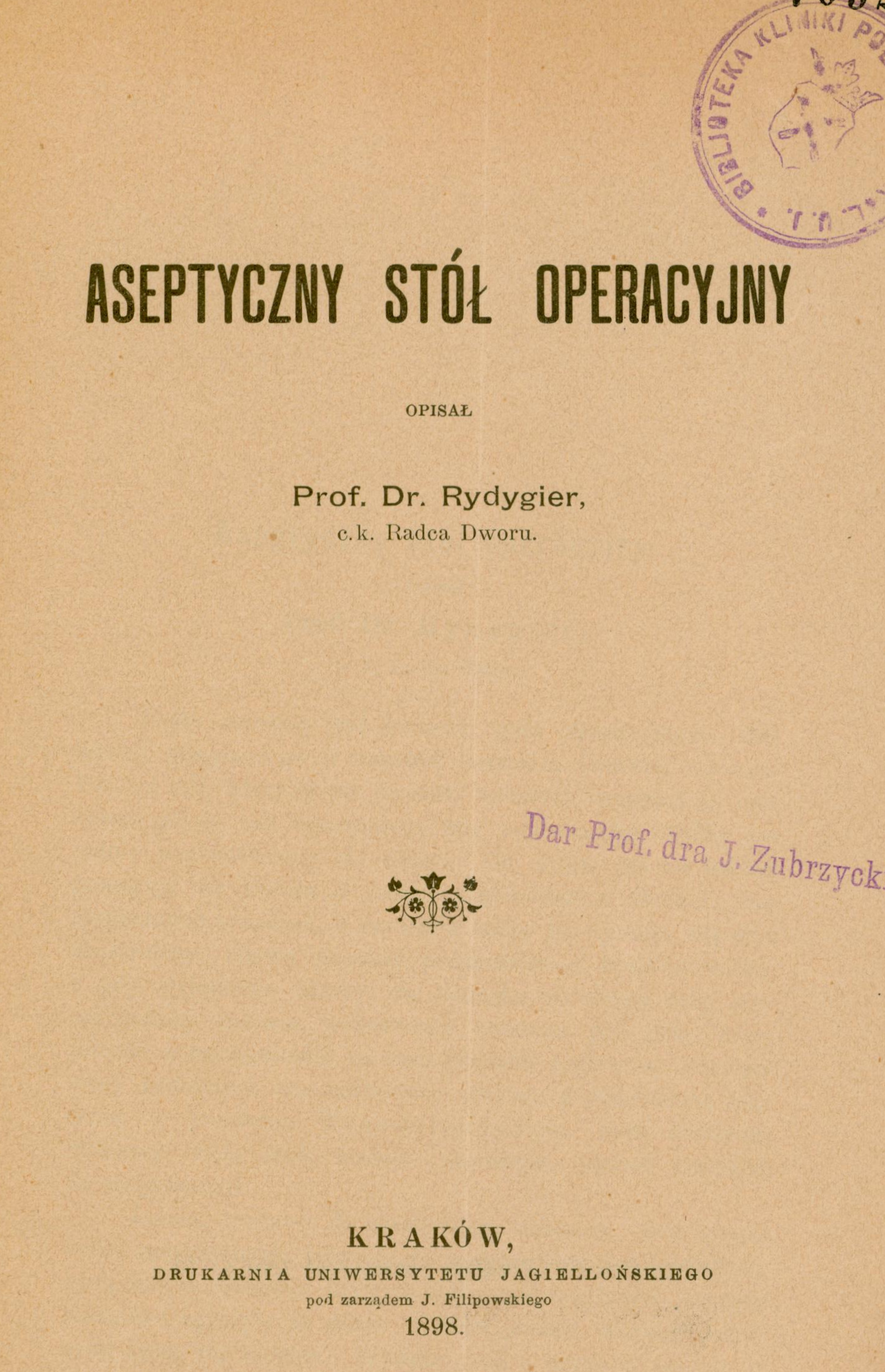 Aseptyczny stół operacyjny / Rydygier. - Kraków, 1898