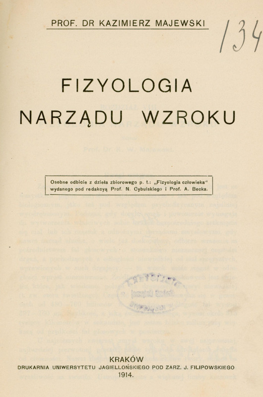 Fizyologia narządu wzroku / Kazimierz Majewski. - Kraków, 1914, s.tyt.