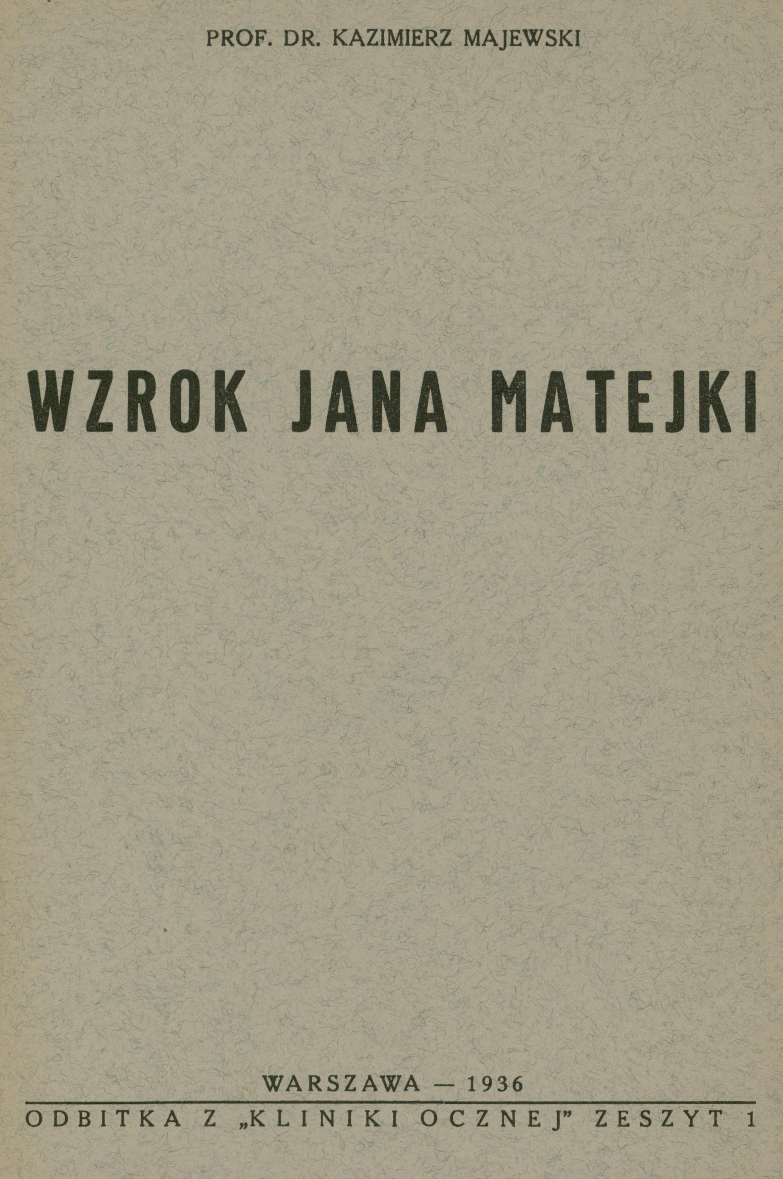 Wzrok Jana Matejki / Kazimierz Majewski. - Warszawa, 1936, okł.