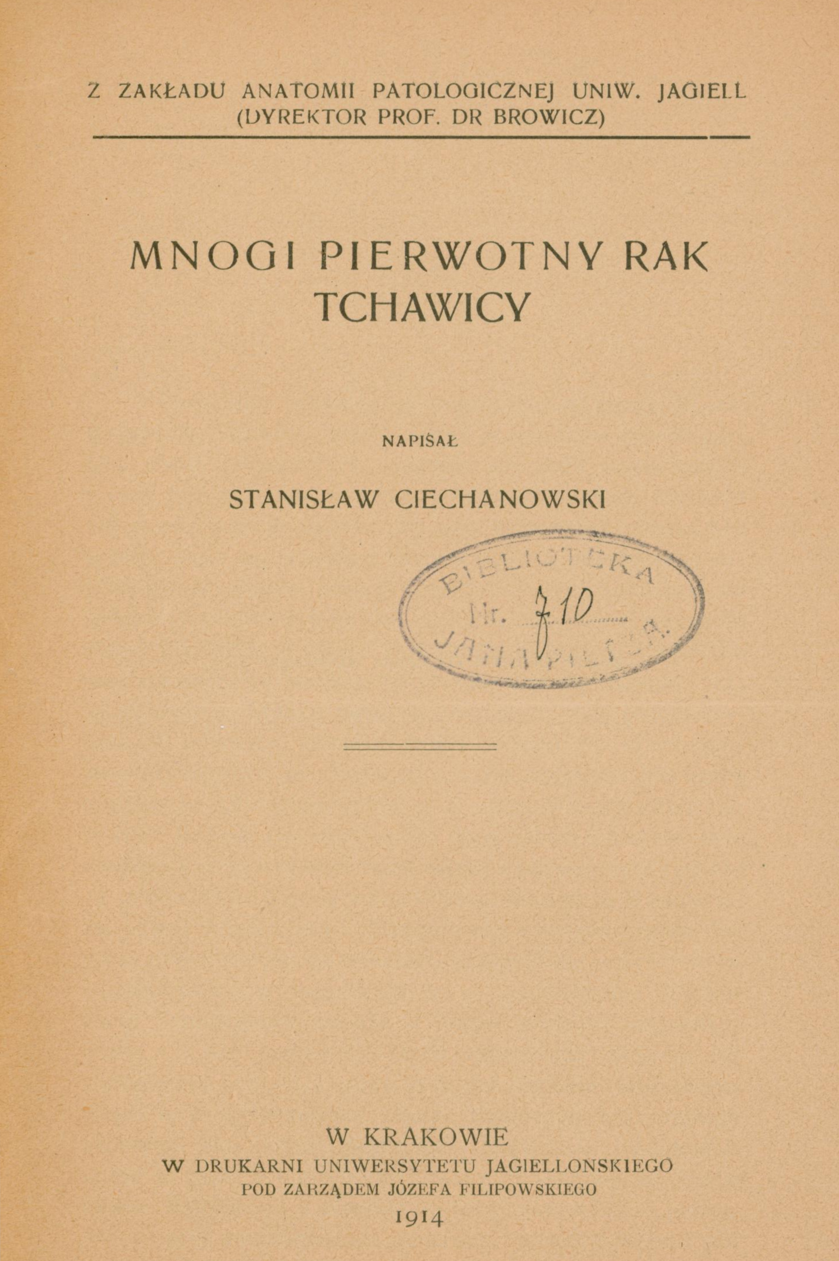 - Mnogi pierwotny rak tchawicy / Stanisław Ciechanowski. - Kraków, 1914