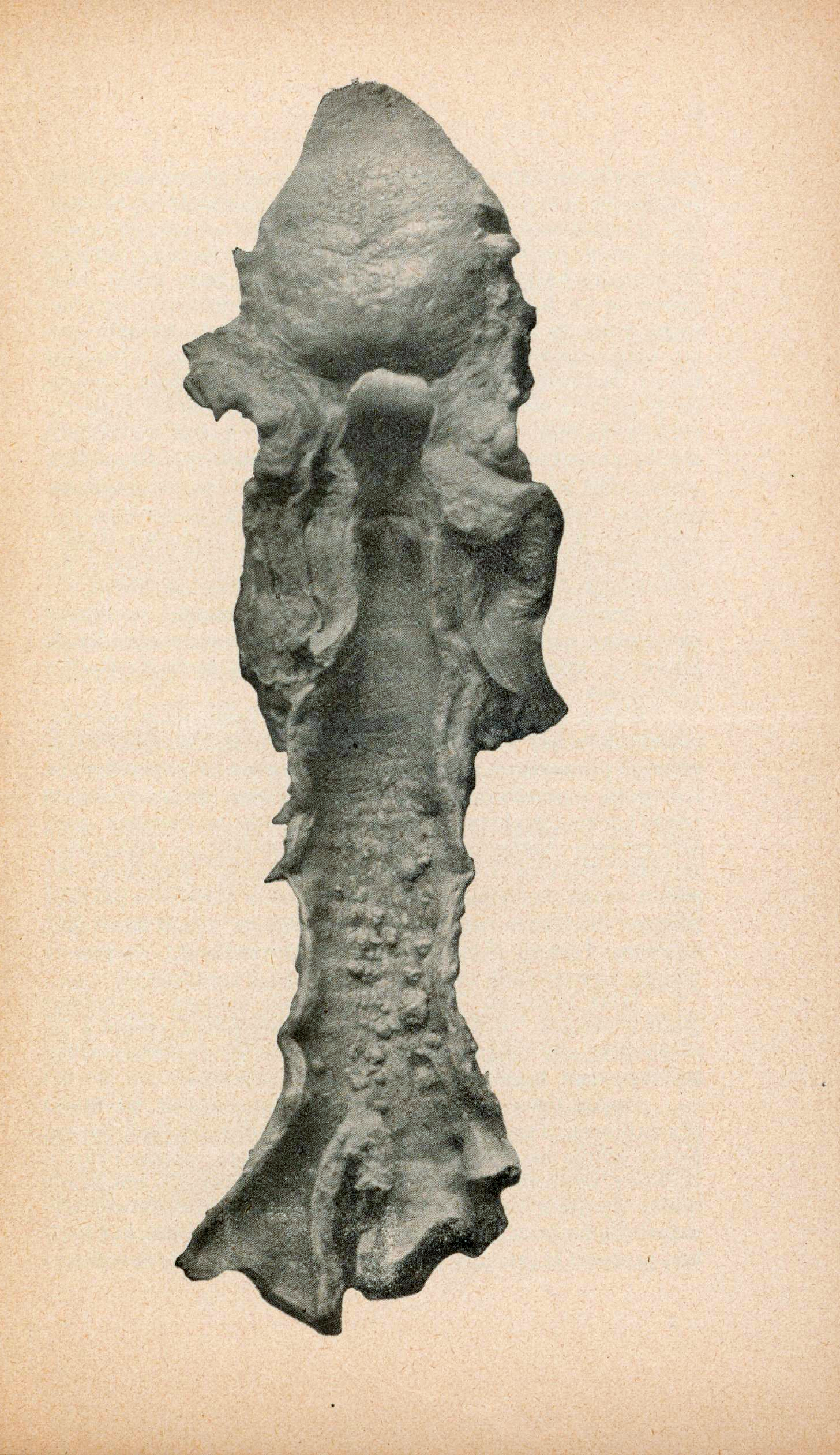 Tchawica z mnogimi zmianami nowotworowymi - ilustracja z pracy „Mnogi pierwotny rak tchawicy". 1914.