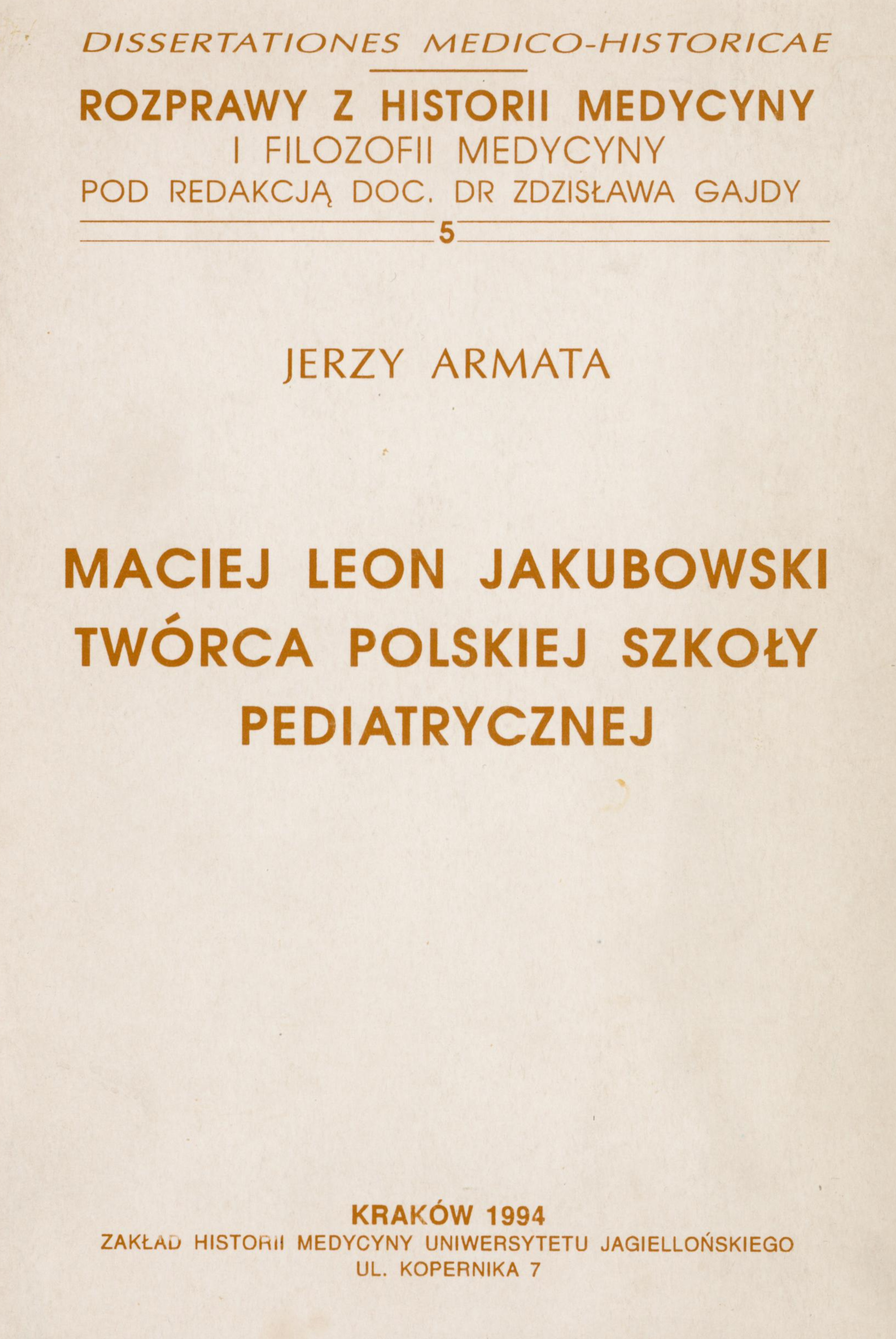 Maciej Leon Jakubowski twórca polskiej szkoły pediatrycznej / Jerzy Armata. - Kraków, 1994