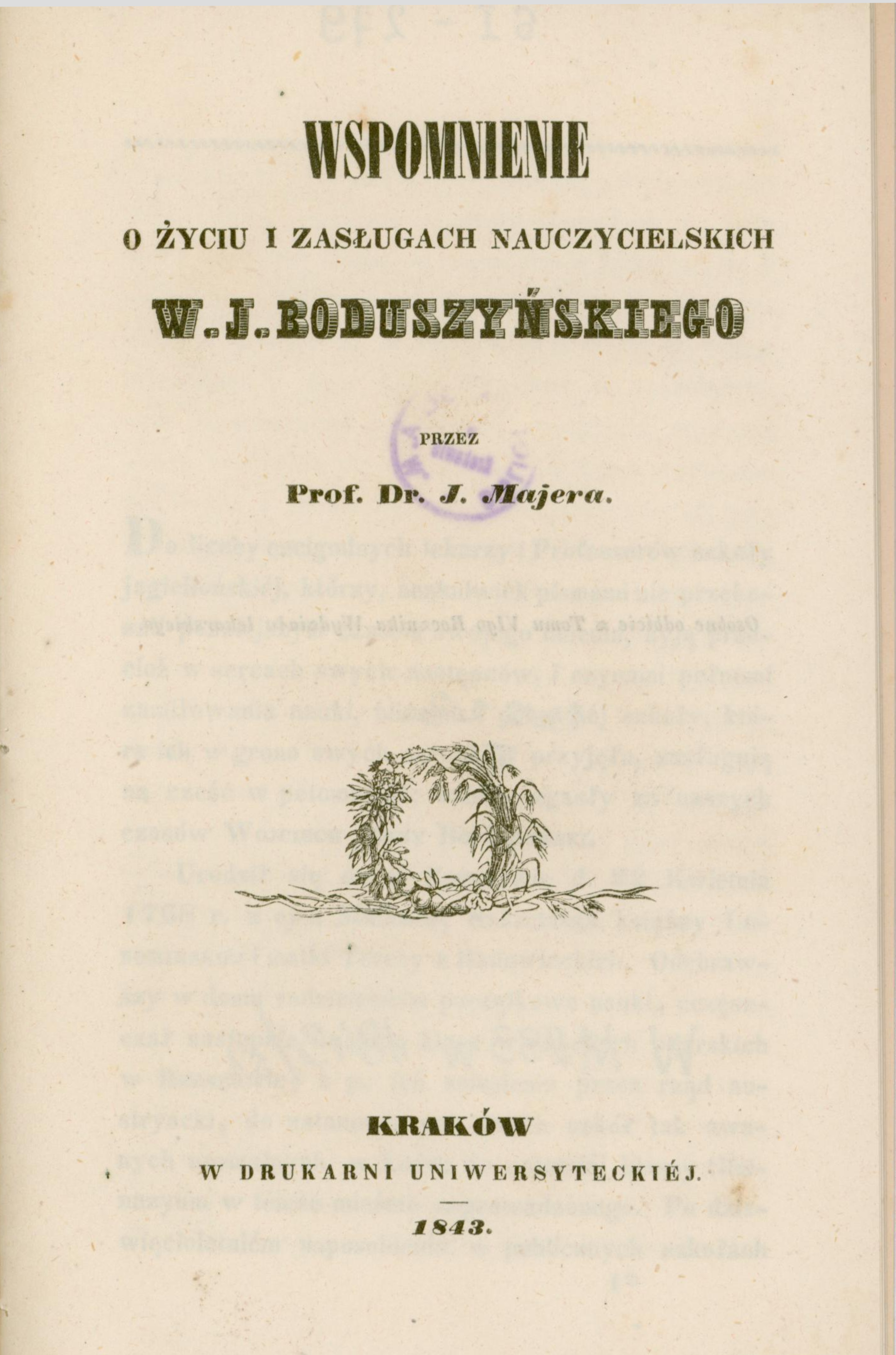 Wspomnienie o życiu i zasługach nauczycielskich W. J. Boduszyńskiego / przez J. Majera. - Kraków, 1843