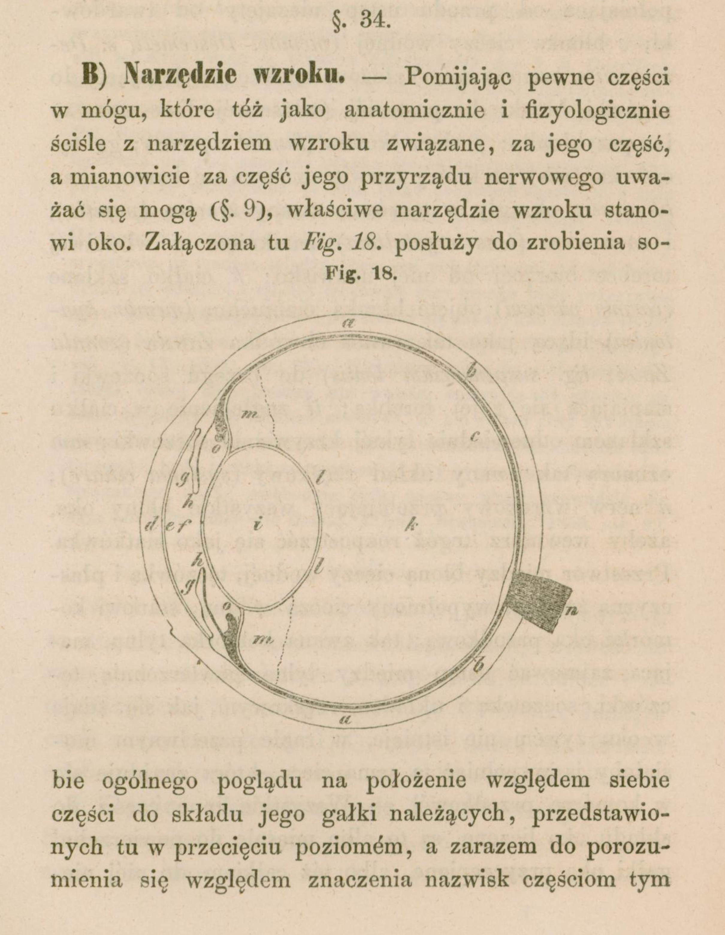 - Przekrój przez gałkę oczną - Fig. 18 z „Fizjologiji zmysłów” prof. dr. J. Majera z 1857 r.