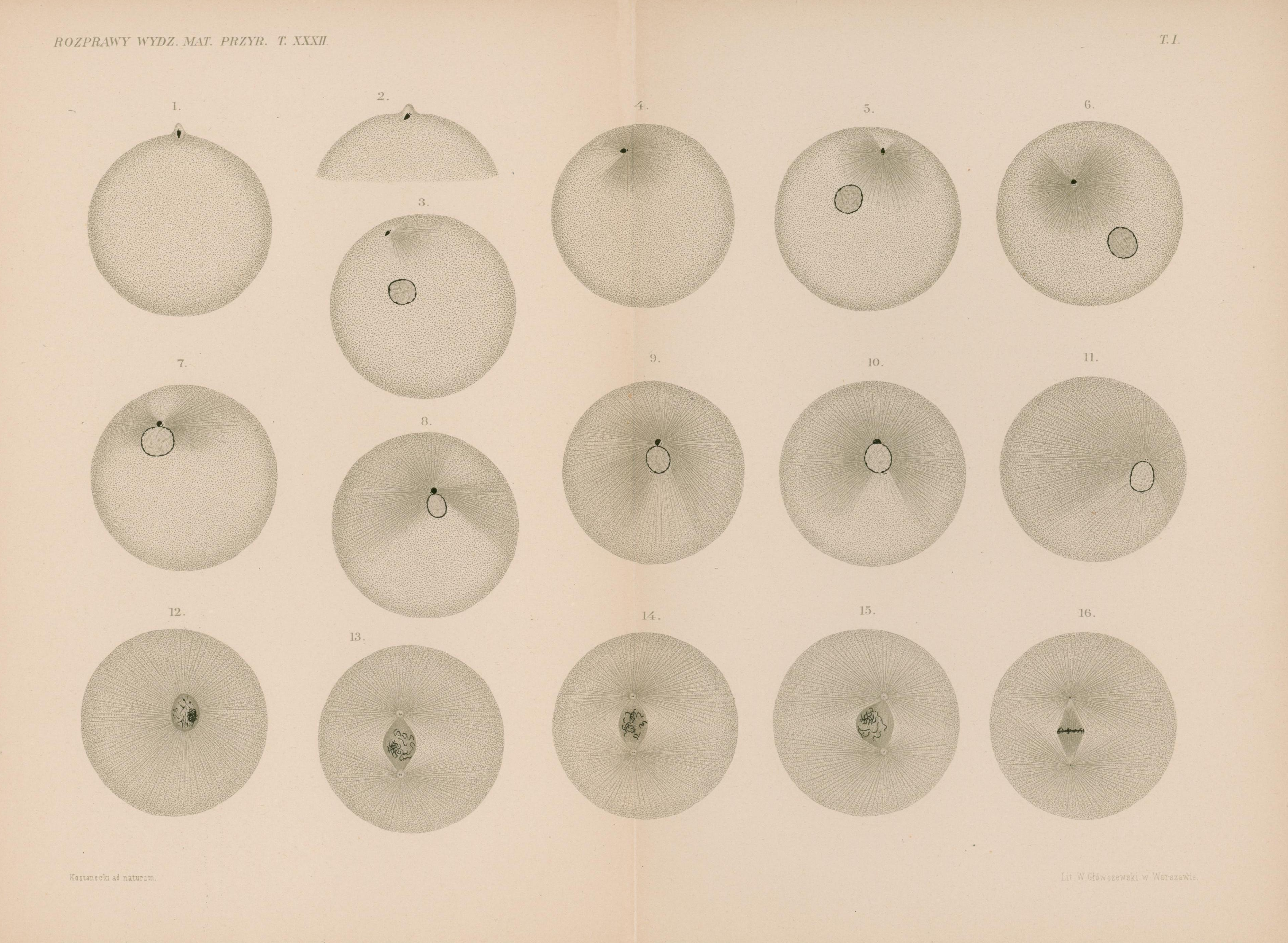 - Ilustracja pochodząca z pracy "Badania nad zapłodnionemi jajkami jeżowców".