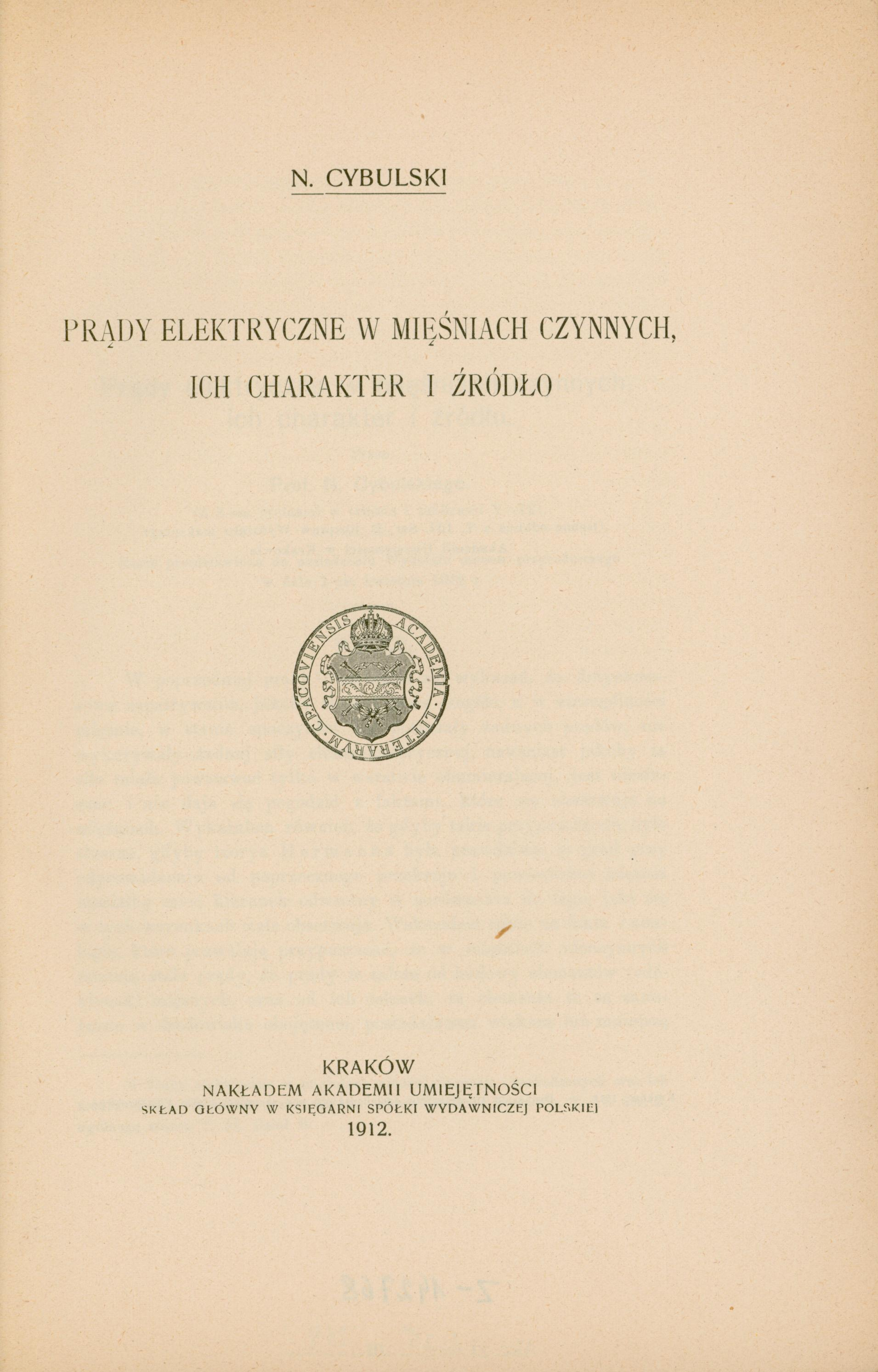 - Prądy elektryczne w mięśniach czynnych, ich charakter i źródło / N. Cybulski. - Kraków, 1912