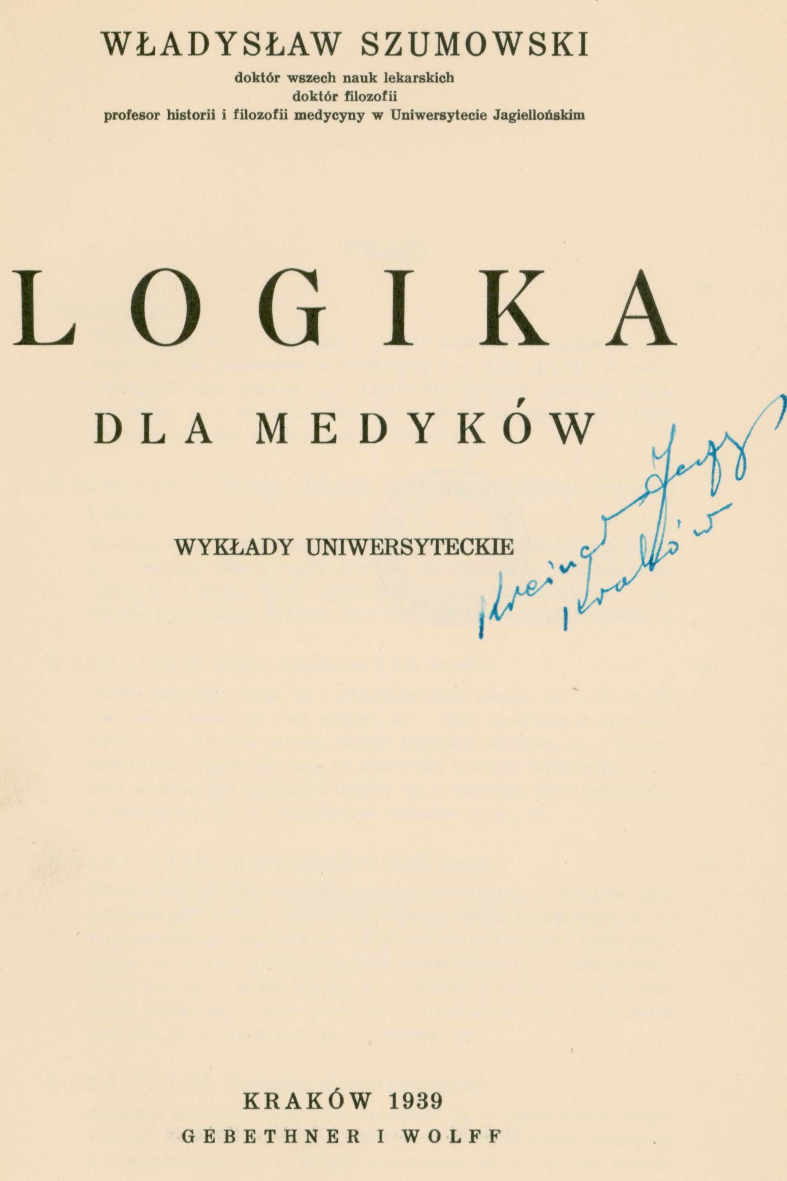 Logika do medyków / Władysław Szumowski. - Kraków, 1939
