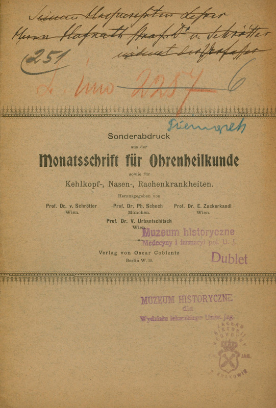 Eigene Casuistik der inspiririten Fremdkörper, nebst Bemerkungen über die Extraction derselben aus den tieferen Luftwegen / Pieniążek. - Berlin, 1903
