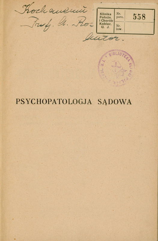 Okładka pracy "Psychopatologja sądowa na podstawie ustaw obowiązujących w Rzeczypospolitej Polskiej".