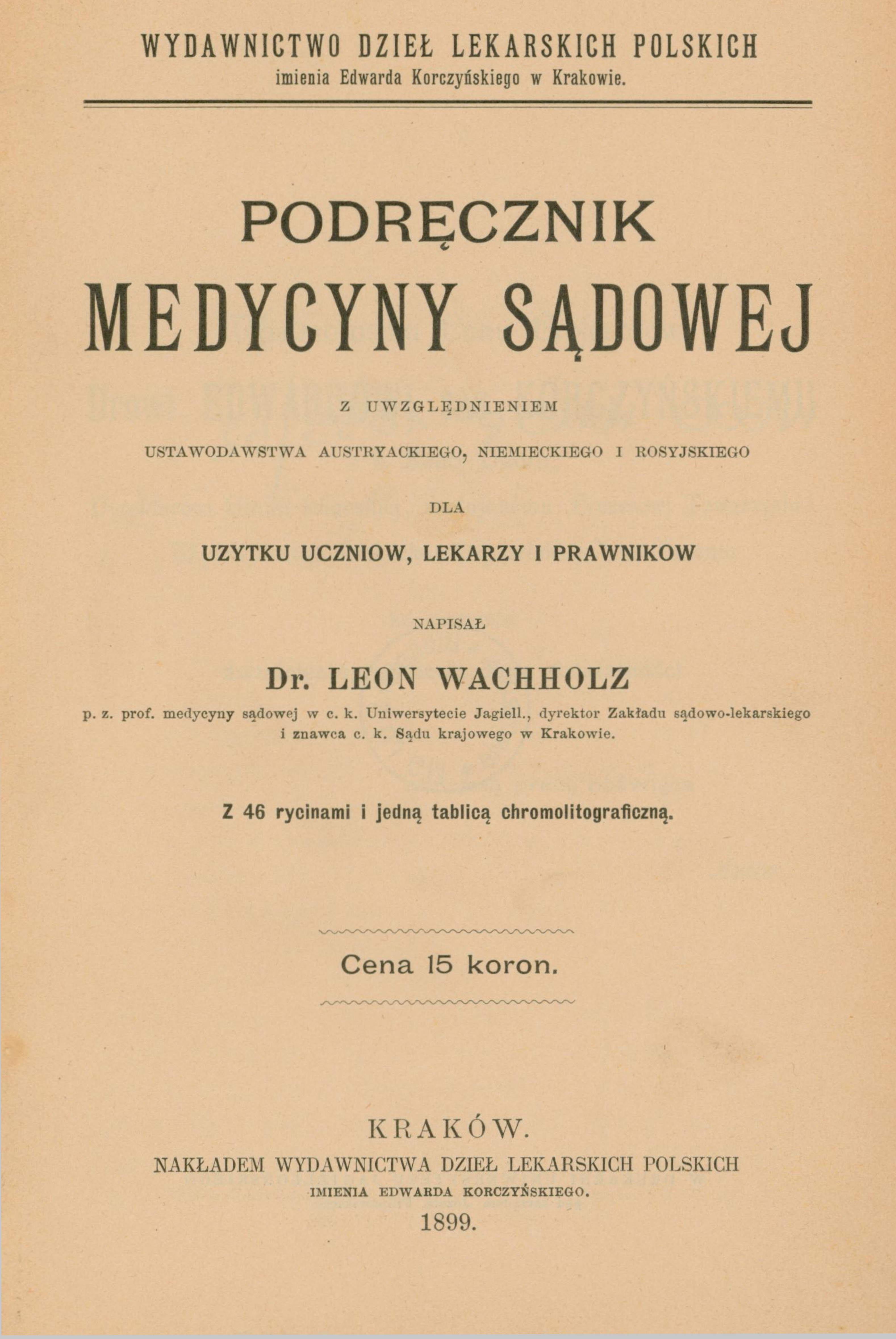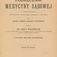 Podręcznik medycyny sądowej, z uwzględnieniem ustawodawstwa austryackiego, niemieckiego i rosyjskiego dla użytku uczniów, lekarzy i prawników / Leon Wachholz. - Kraków, 1899