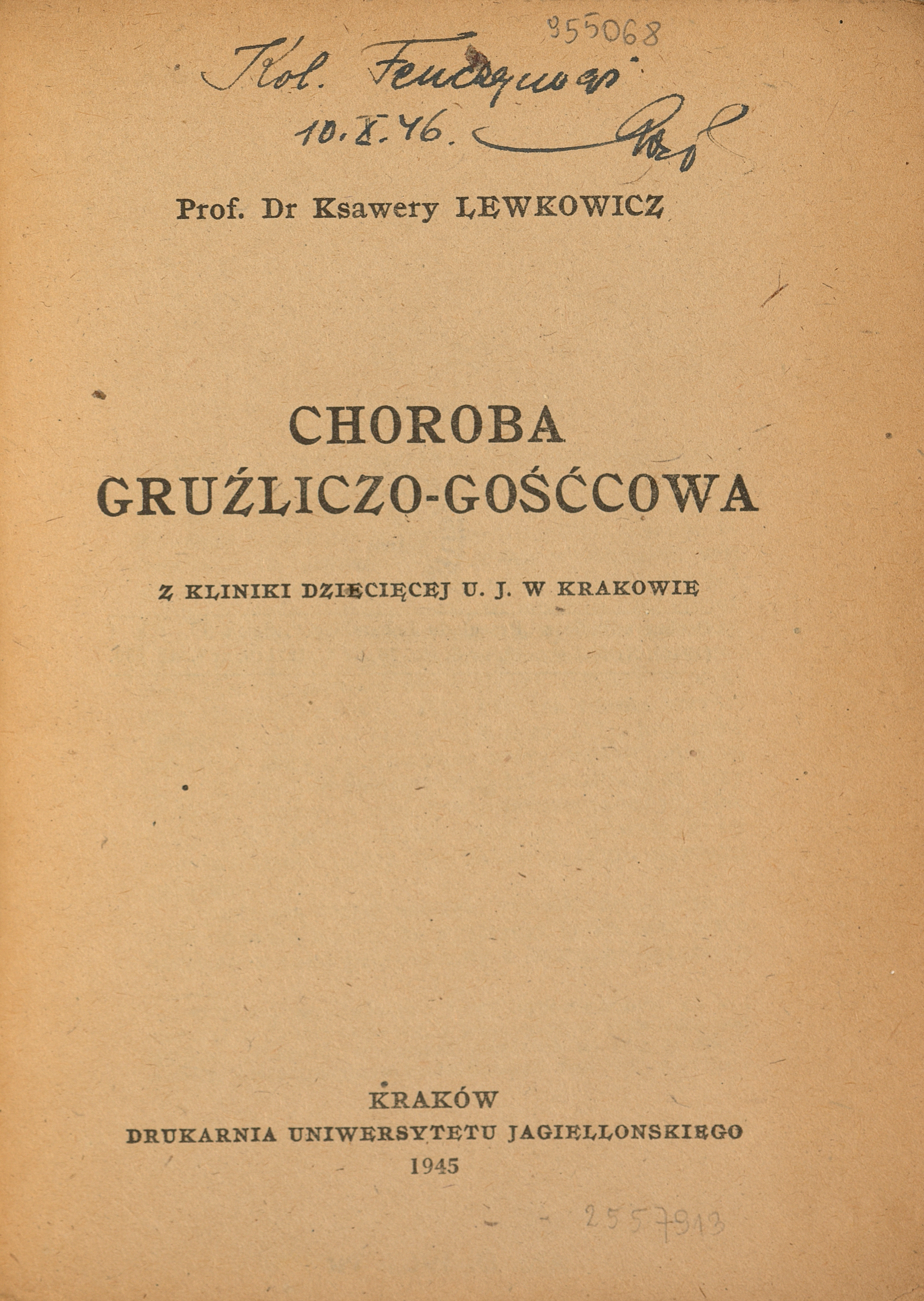 Choroba gruźliczo-gośćcowa / Ksawery Lewkowicz. - Kraków, 1945