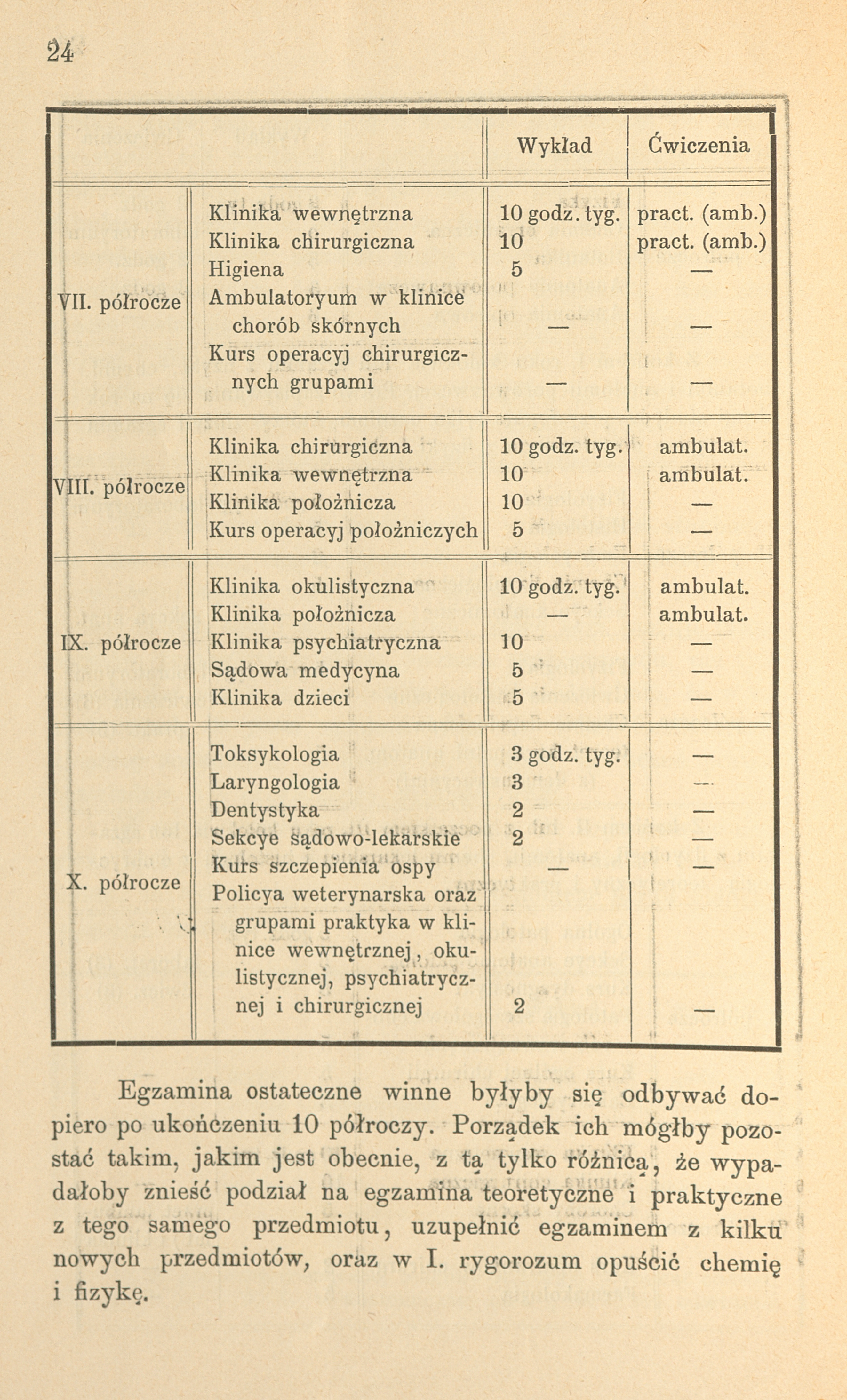 Propozycja planu studiów lekarskich - „Sprawa reformy studyów lekarskich”, 1896 r.