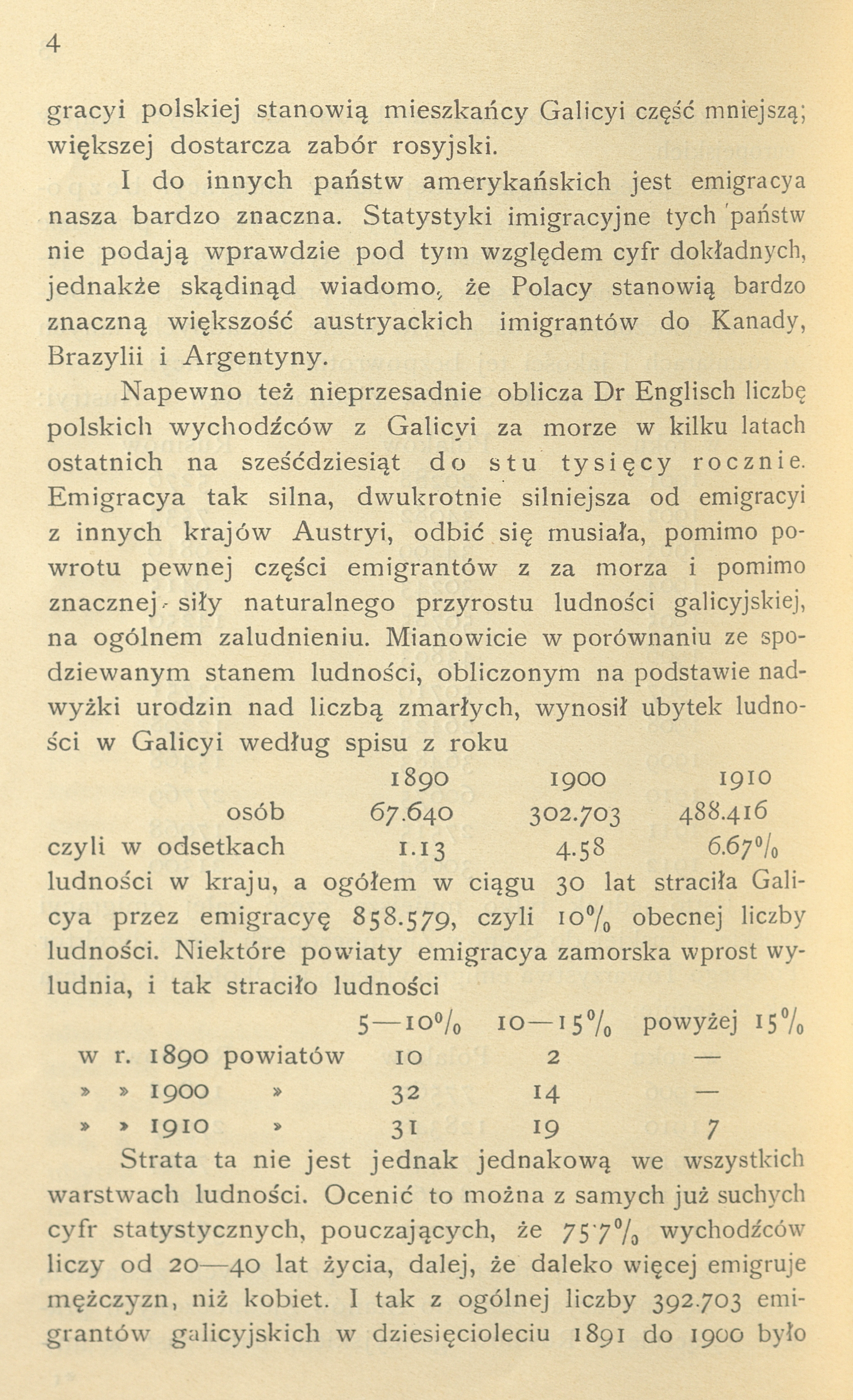 Czwarta strona pracy „Emigracya pod względem higieniczno-społecznym”. Kraków, 1914 .