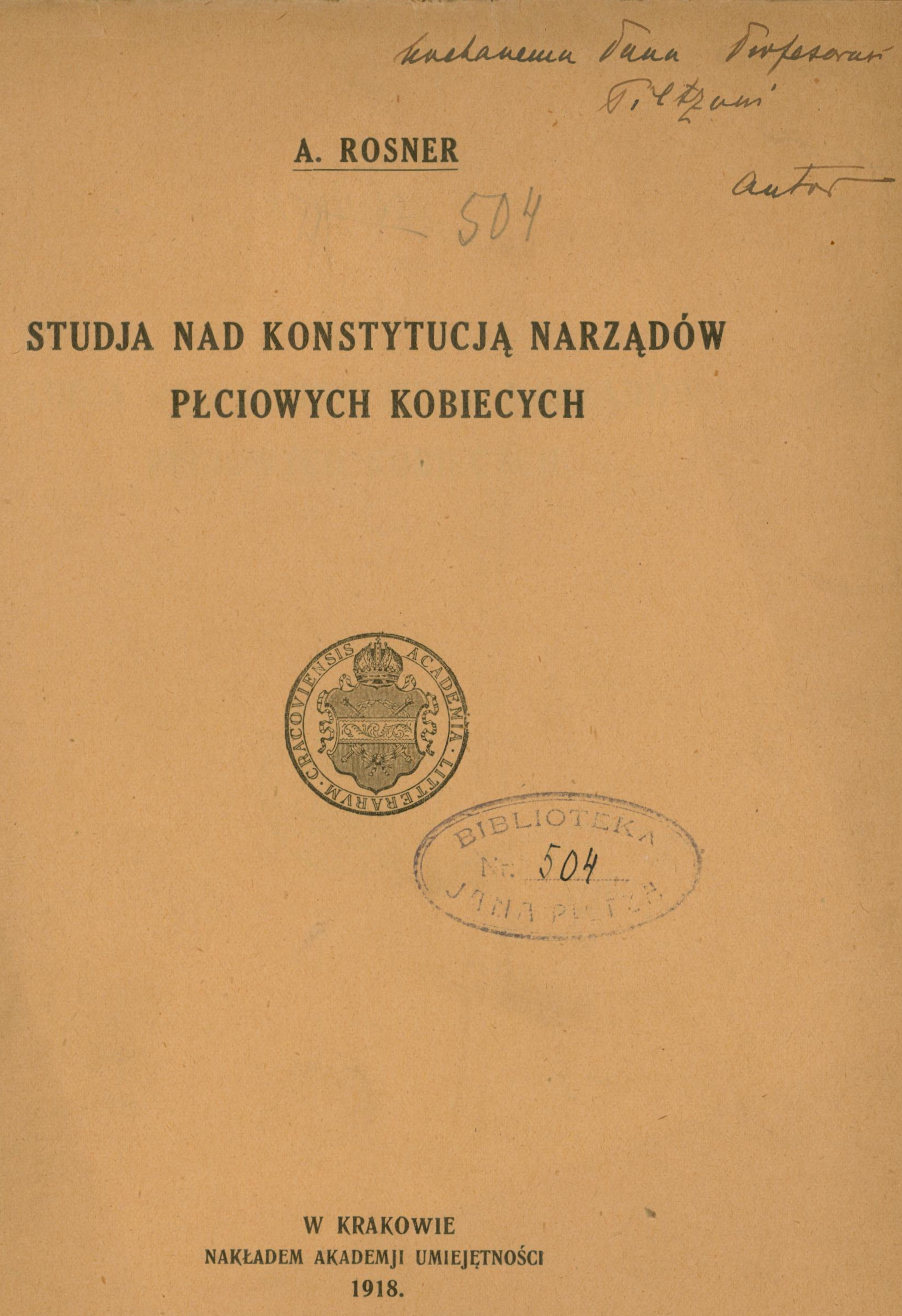 Studja nad konstytucją narządów płciowych kobiecych / A. Rosner. - Kraków, 1918