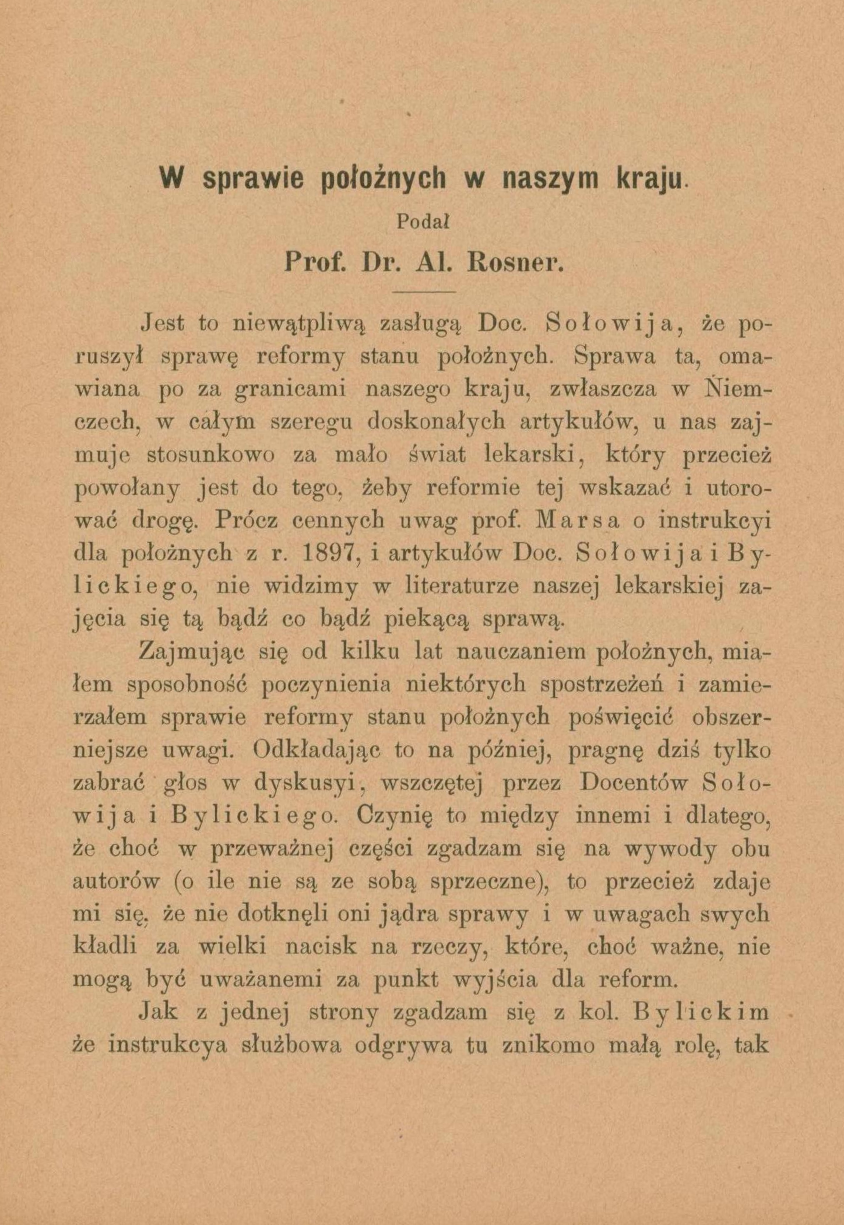 W sprawie położnych w naszym kraju / Al. Rosner. - Kraków, 1902