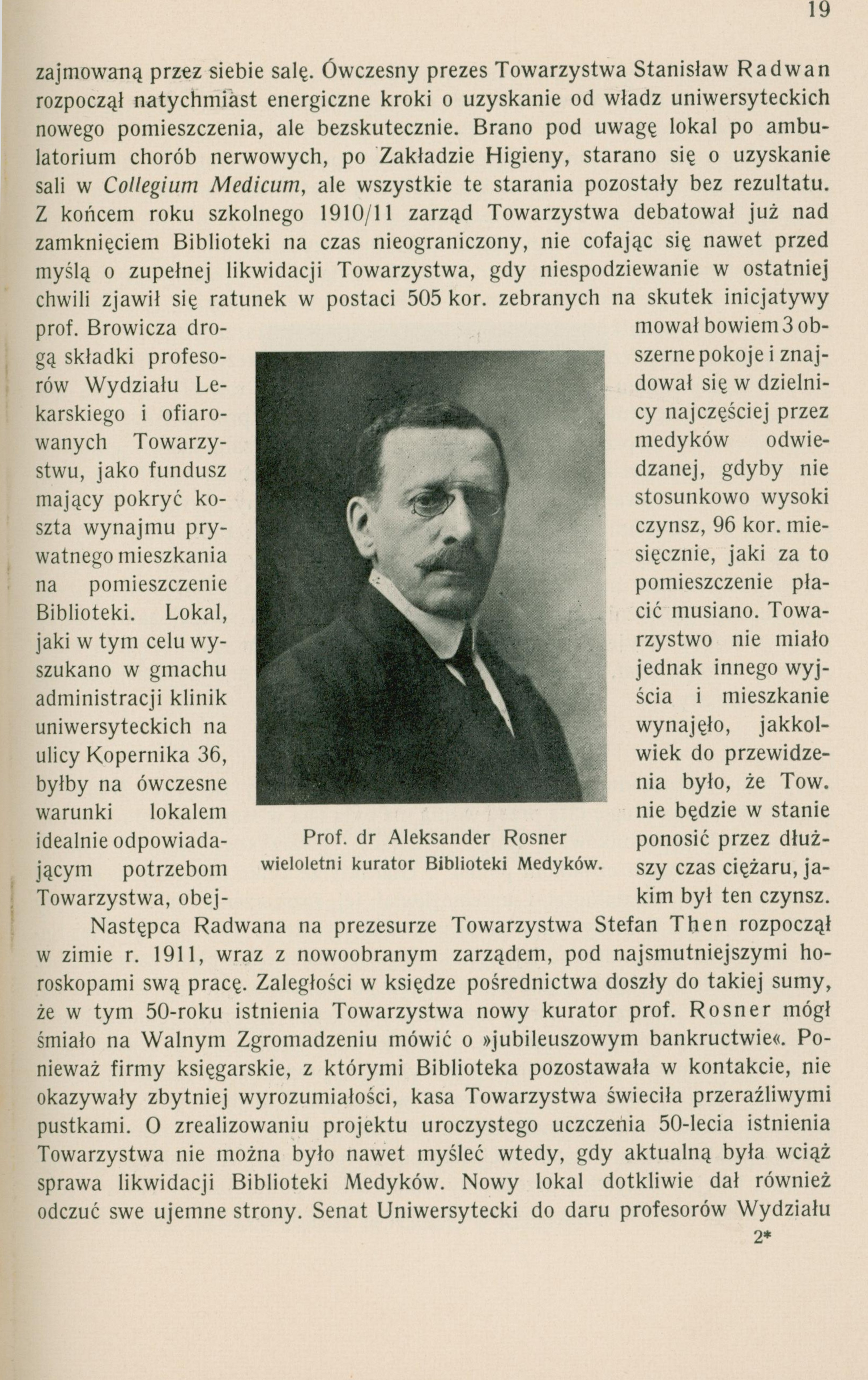 Prof. dr Aleksander Rosner wieloletni kurator Biblioteki Medyków