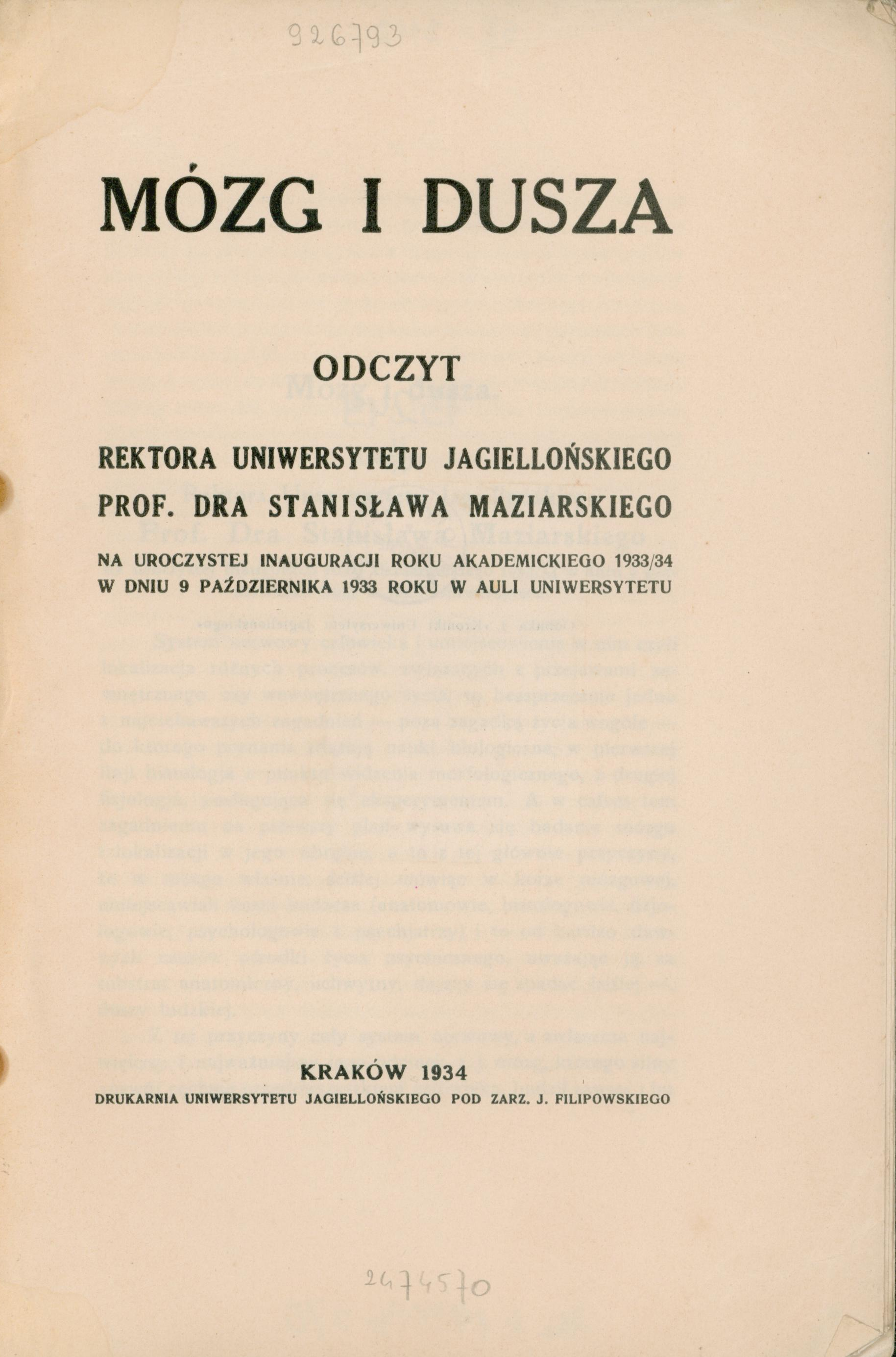 Mózg i dusza / Stanisław Maziarski. - Kraków, 1934