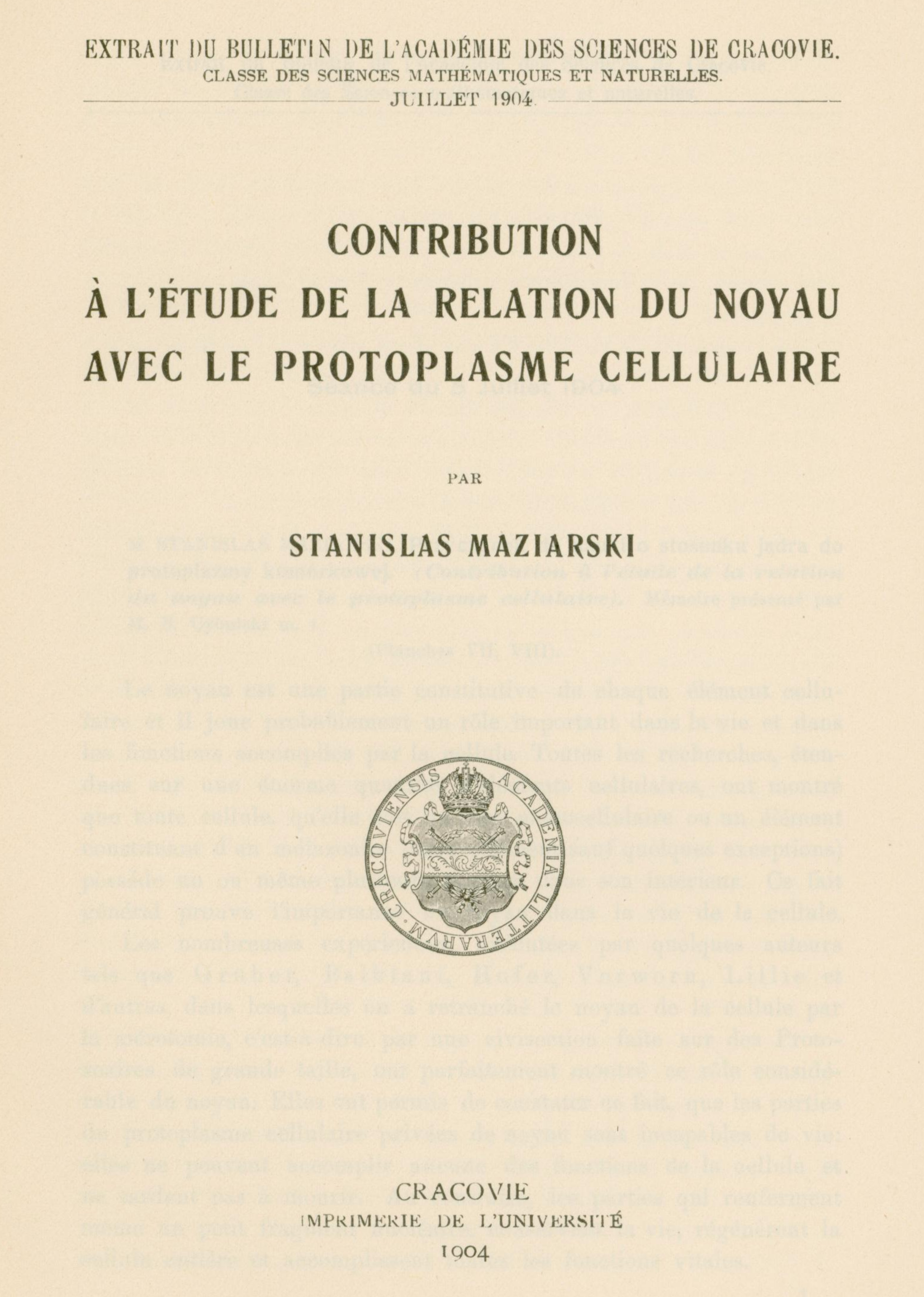 Contribution à l'étude de la relation du noyau avec le protoplasme cellulaire / Stanislas Maziarski. - Cracovie, 1904