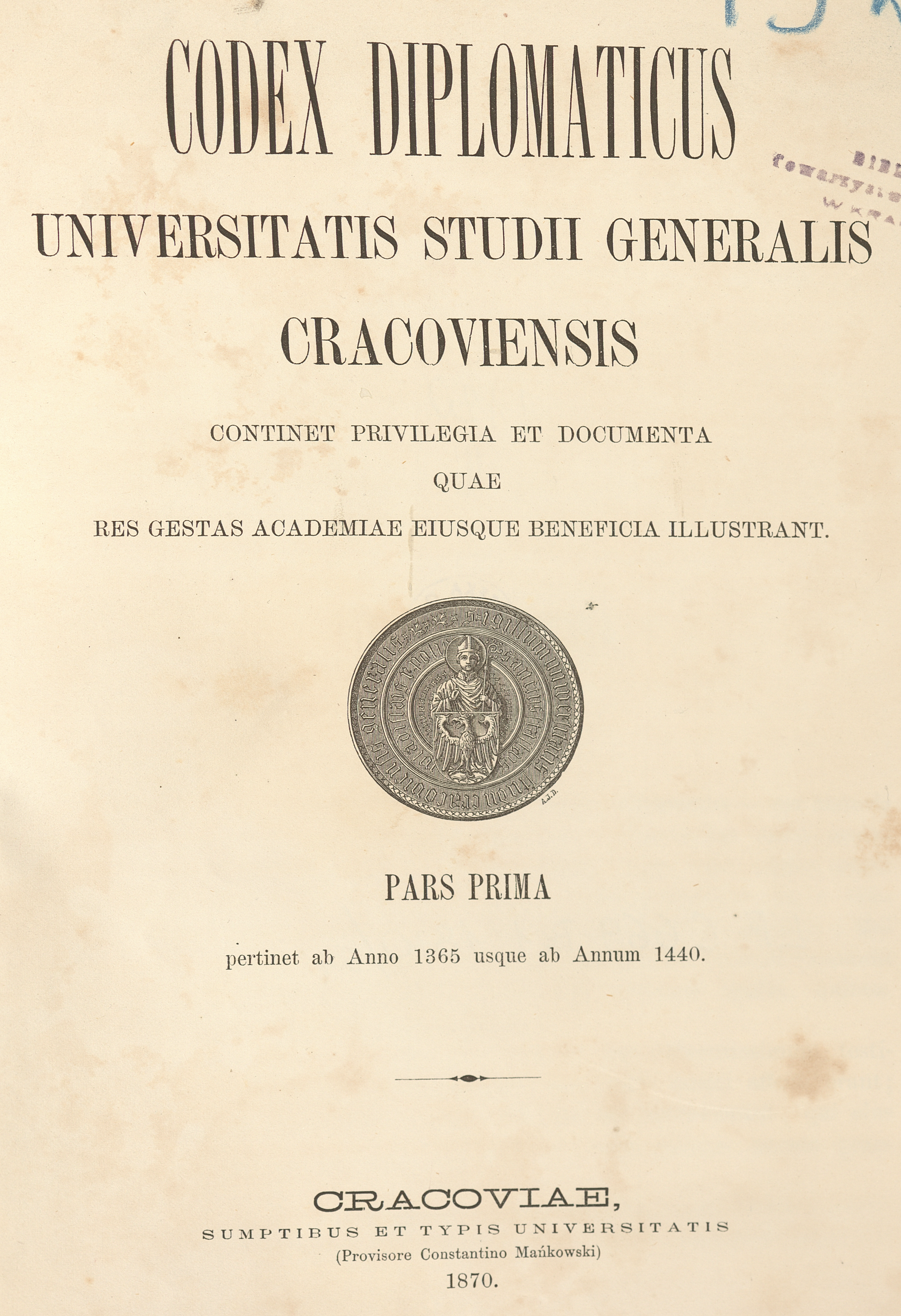 Codex diplomaticus universatis studii generalis Cracoviensis. - Cracoviae, 1870
