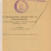 - Okładka z "Zur Operationstechnik schwieriger Fälle von Blasenscheidenfisteln"