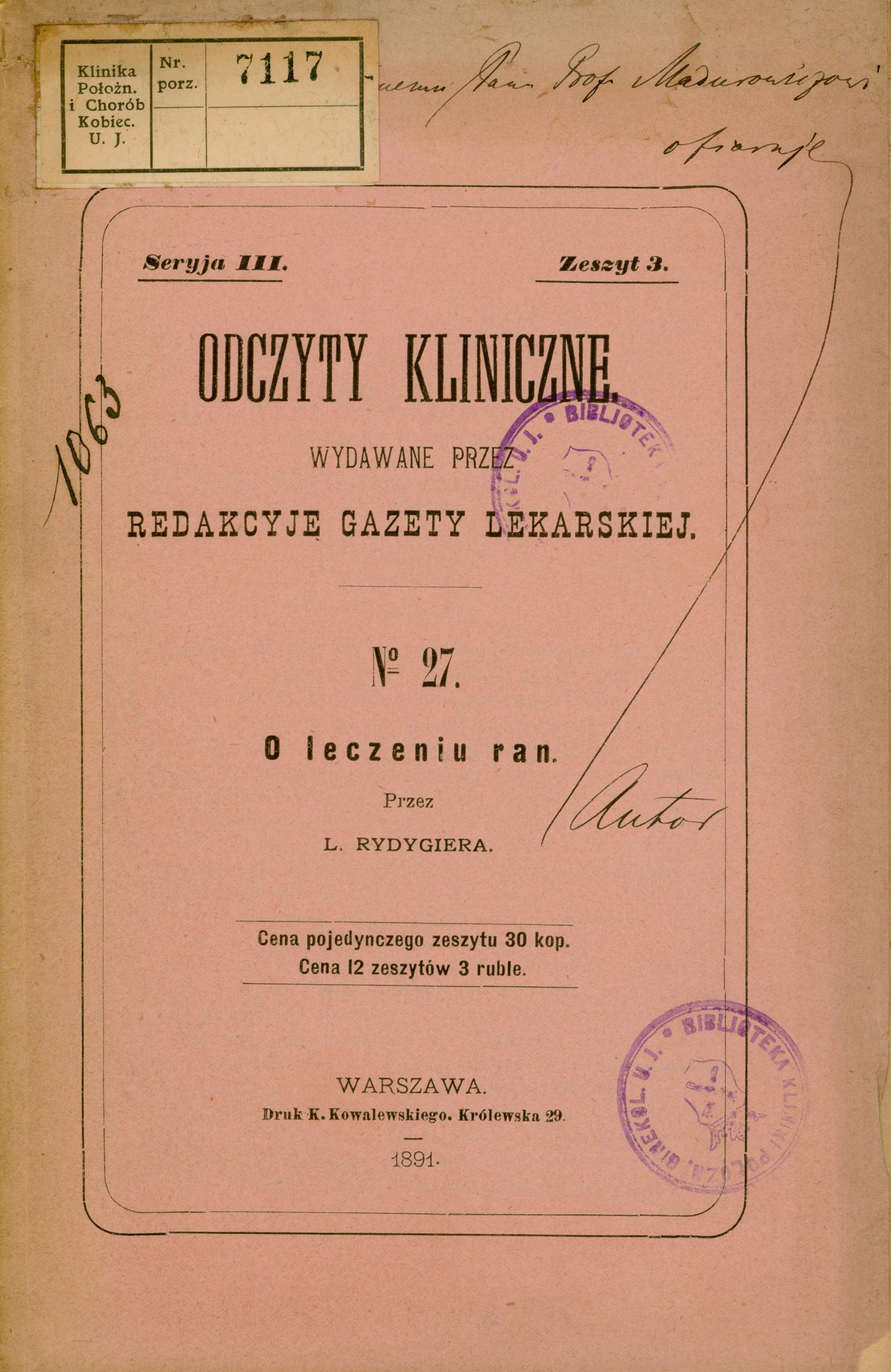 O leczeniu ran / L. Rydygier. - Warszawa, 1891